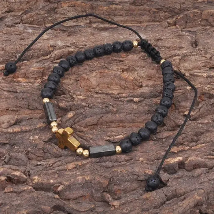 Православный браслет с крестом из натуральных материалов — символ веры и духовной силы. Этот уникальный аксессуар выполнен из гематита и лавы, что придаёт ему особую энергетику. Браслет прекрасно подходит для повседневного ношения и станет стильным дополнением к любому образу.