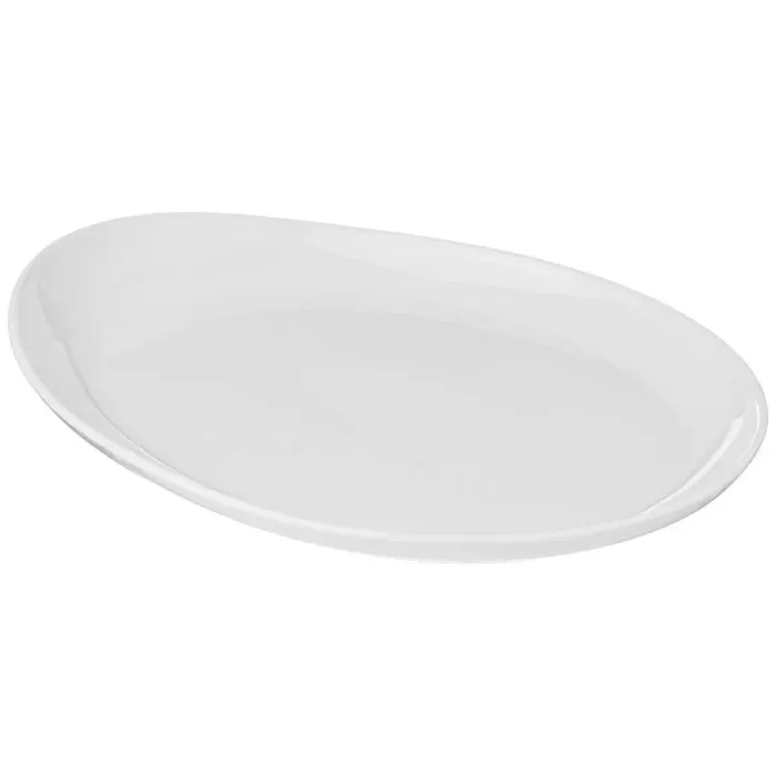 Тарелки выполнены из белого фарфора, материала, известного прочностью и гигиеничностью. Поверхность изделий гладкая. Овальная форма и отсутствие выраженного декора относятся к конструктивным особенностям данной модели.