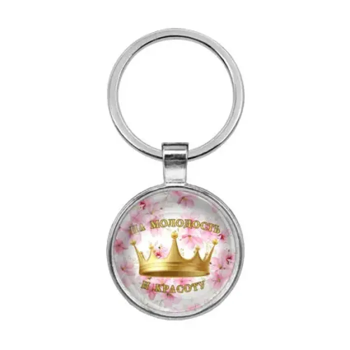 Брелок для ключей из бижутерного сплава со стеклянной линзой.