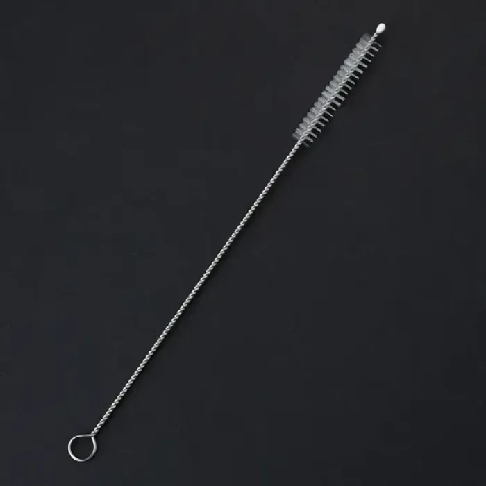 Щеточка для чистки бомбильи длиной 21 см предназначена для гигиенического ухода за этим инструментом для приготовления мате. Аксессуар позволяет удалять остатки листьев и пыли из внутреннего канала и с поверхности бомбильи.