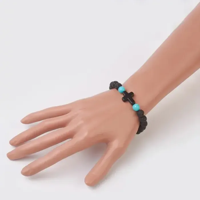 Христианский браслет с крестиком, лава, 8мм BJBS-255