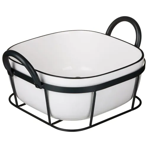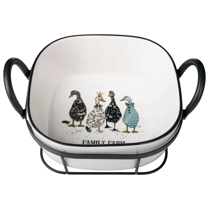 Форма на металлической подставке предназначена для приготовления и сервировки блюд. Изделие относится к коллекции «Family Farm» бренда Lefard и украшено изображением гусей.