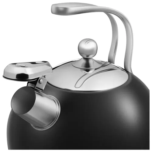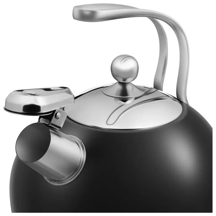 Изделие изготовлено из нержавеющей стали толщиной 0,5 мм. Дно имеет капсульную многослойную конструкцию с алюминиевой прослойкой и толщину 3,5 мм, что способствует равномерному нагреву. Функциональные элементы включают свисток для звукового сигнала о закипании и клапан на носике для удобного наливания.