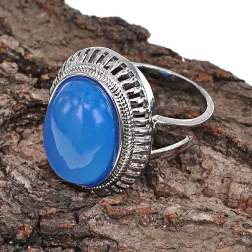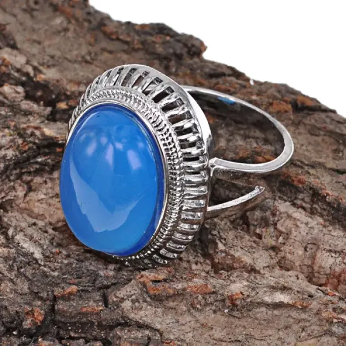 Кольцо с натуральным синим агатом — это не только стильное украшение, но и мощный оберег. Агат традиционно считается камнем-защитником, который помогает восстановить равновесие тела и духа. Размер кольца составляет 8 (18 мм), ширина — 2 см. Изготовлено из бижутерного сплава с покрытием под серебро, оно станет прекрасным дополнением к любому образу.