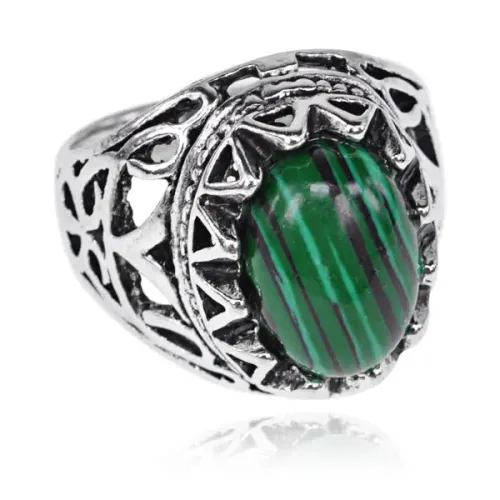 Кольцо с камнем Малахит, размер 11 KL171-02