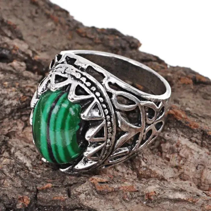 Кольцо с камнем Малахит — это не просто украшение, а символ творческой энергии и уверенности. Размер кольца составляет 11 (21 мм), выполнено из бижутерного сплава с покрытием под серебро. Вставка из синтетического малахита добавляет изделию яркости и уникальности, а ширина кольца достигает 2 см.
