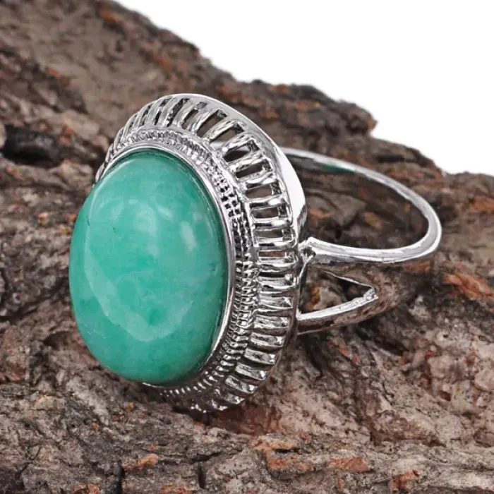 Кольцо с натуральным амазонитом — это не только стильный аксессуар, но и символ преданности и смелости. Оно традиционно используется для устранения тревоги и неуверенности, поднимая настроение и создавая атмосферу гармонии. Изготовлено из бижутерного сплава с покрытием под серебро, кольцо имеет ширину 2 см и размер 8 (18 мм). Вставка из амазонита придает изделию уникальность и красоту. Этот камень считается защитником семьи, приносит достаток, радость и покой в дом. Кольцо станет замечательным подарком или дополнением к любому образу.