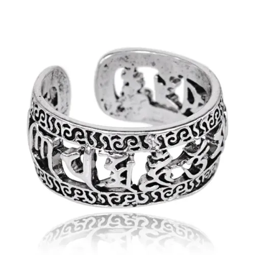 Безразмерное кольцо с мантрами, цвет серебряный KL183