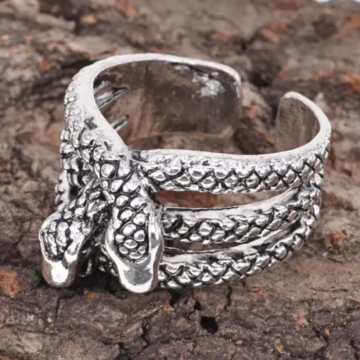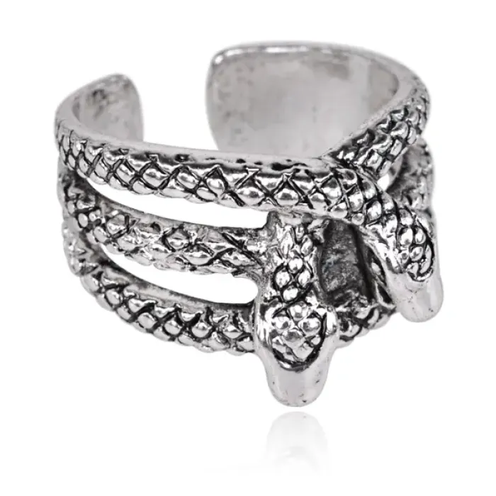 Безразмерное кольцо из бижутерного сплава с дизайном в виде двух змей.