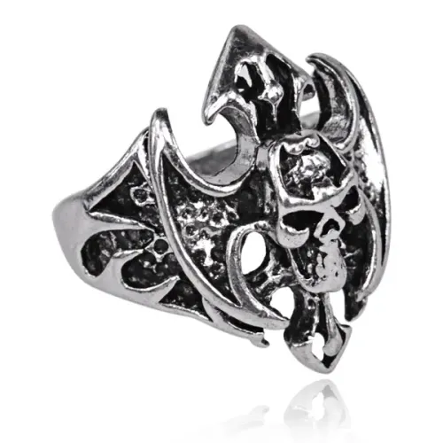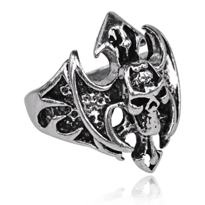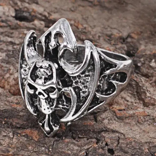 Безразмерное кольцо с дизайном в виде черепа. Изготовлено из бижутерного сплава.