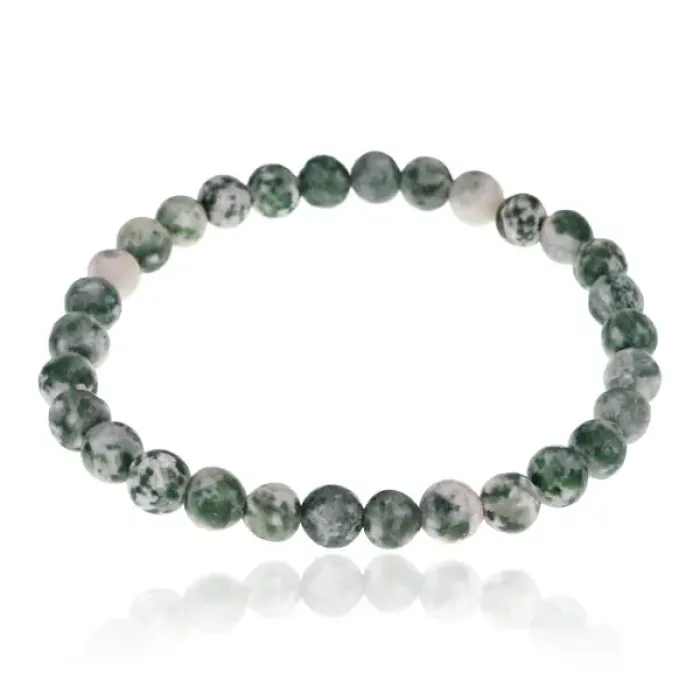 Стрейч-браслет из натурального камня зелёная яшма с диаметром бусин 6 мм.