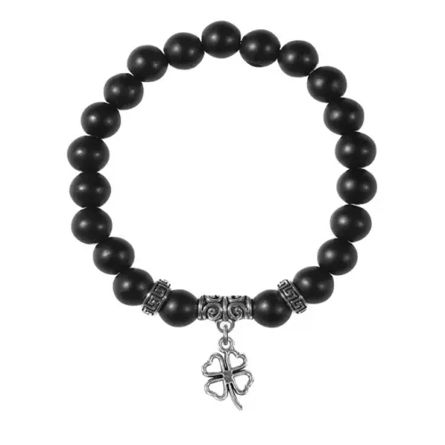 Браслет из синтетического шунгита с подвеской в виде клевера.