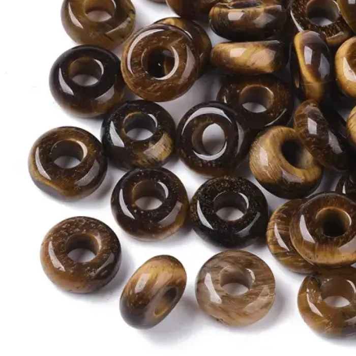 Евробусины с внутренним отверстием диаметром 4 - 5 мм идеально подходят для создания европейских браслетов в стиле Pandora. Эти бусины из натурального камня Тигровый глаз традиционно ценятся за свои защитные свойства и способность развивать интуицию и смелость.
