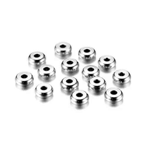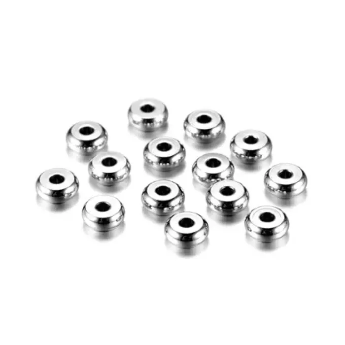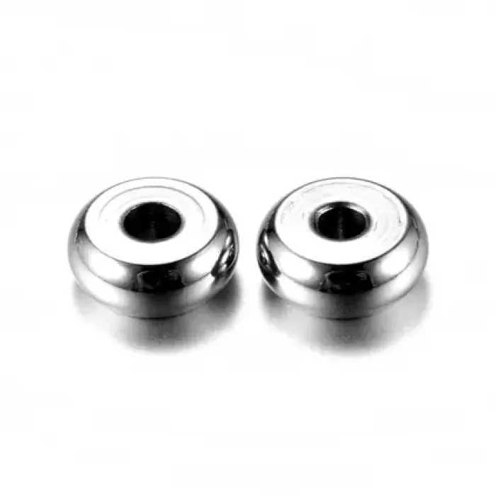 Бусина - разделитель d.5мм, ширина 2мм, отверстие 1мм, нерж.сталь, цвет серебр. FR2010-S