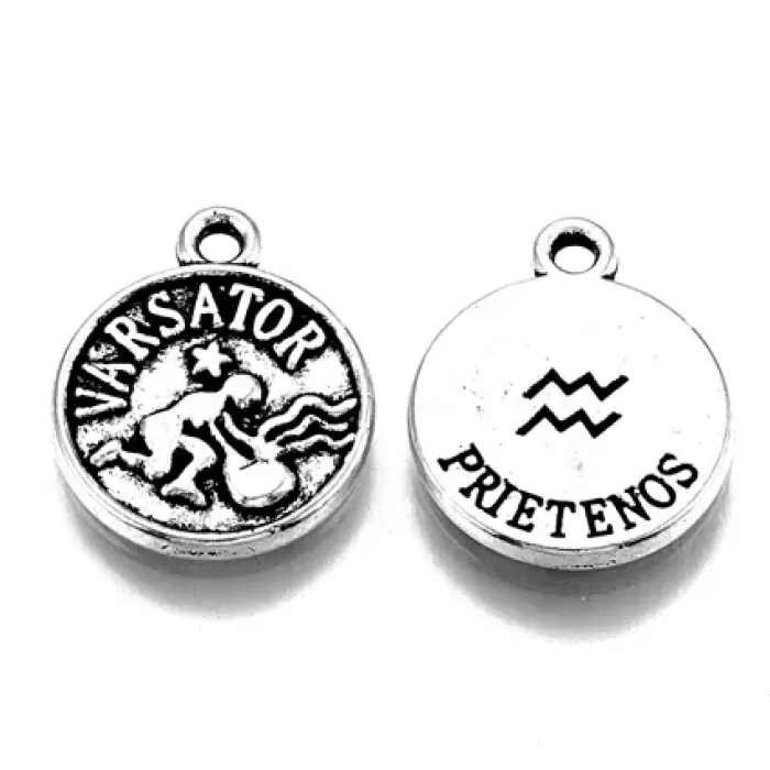 Подвеска для бижутерии в виде знака зодиака Водолей. Изготовлена из бижутерного сплава с серебристым покрытием.
