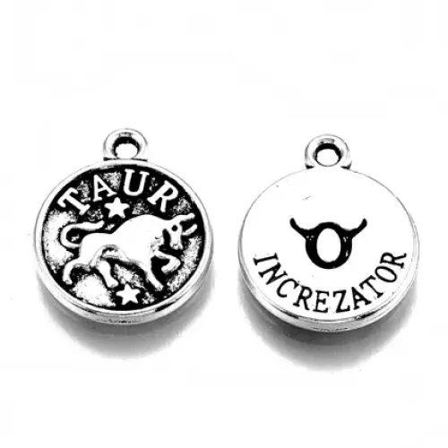 Подвеска для бижутерии в виде символа Тельца, выполнена из бижутерного сплава с серебристым покрытием.