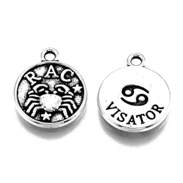 Подвеска для бижутерии в виде знака зодиака Рак. Изготовлена из бижутерного сплава с серебристым покрытием.