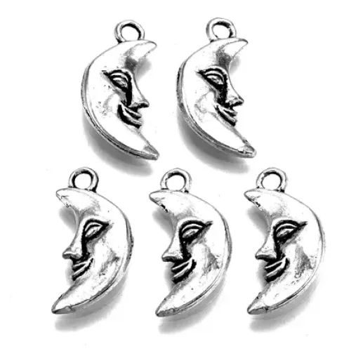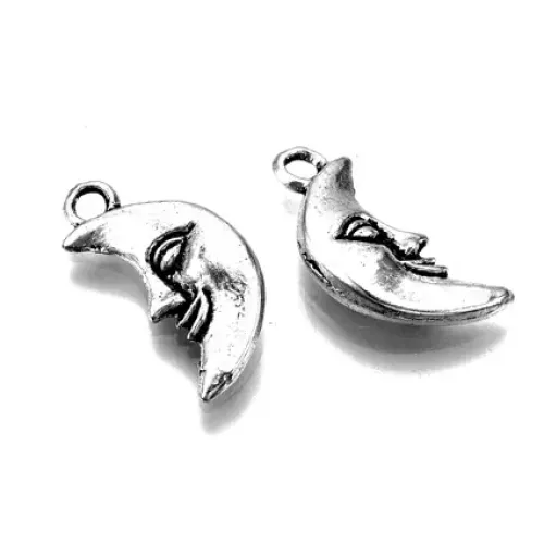 Подвеска для бижутерии в форме месяца из бижутерного сплава с серебристым покрытием.