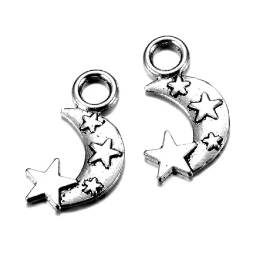 Подвеска для бижутерии «Месяц и звёзды» — это изысканный элемент, который добавит волшебства в любое украшение. Изготовленная из бижутерного сплава с покрытием, она идеально подходит для создания авторской бижутерии: браслетов, кулонов или сережек.