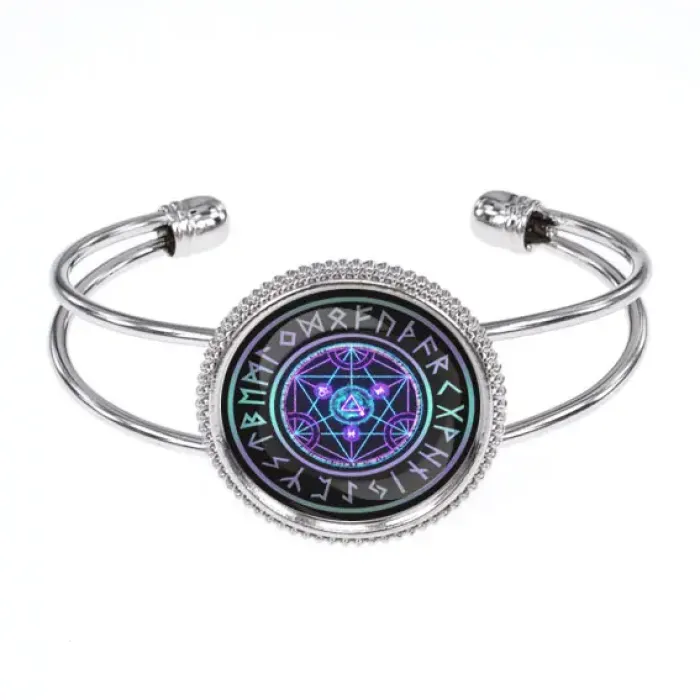 Браслет-амулет с символом магической печати. Изготовлен из бижутерного сплава и стекла.