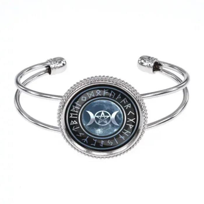 Браслет-амулет с изображением знака богини. Изготовлен из бижутерного сплава со стеклянным элементом.