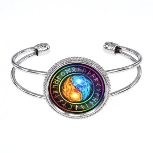 Браслет-амулет с символом Инь-Ян. Изготовлен из бижутерного сплава со стеклянным элементом.