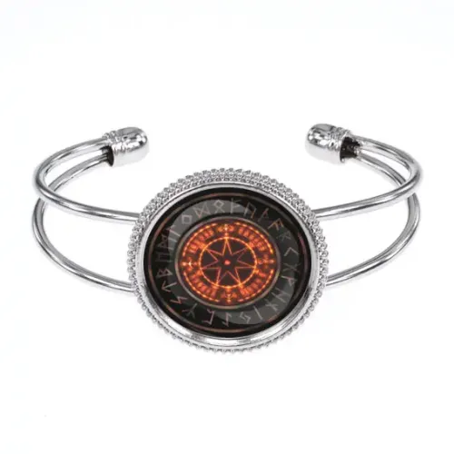Браслет-амулет из бижутерного сплава с изображением звезды под выпуклой стеклянной линзой.