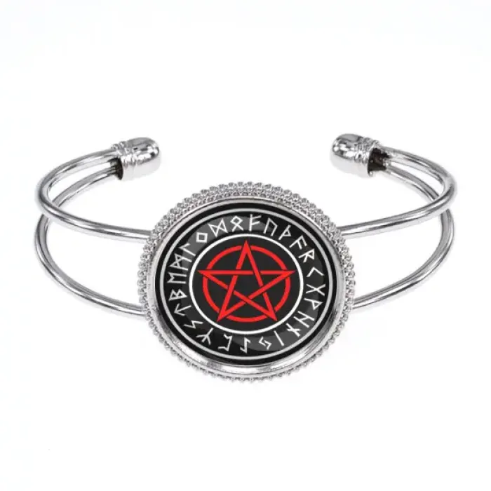 Браслет-амулет с символом пентаграммы. Изготовлен из бижутерного сплава со стеклянным элементом.