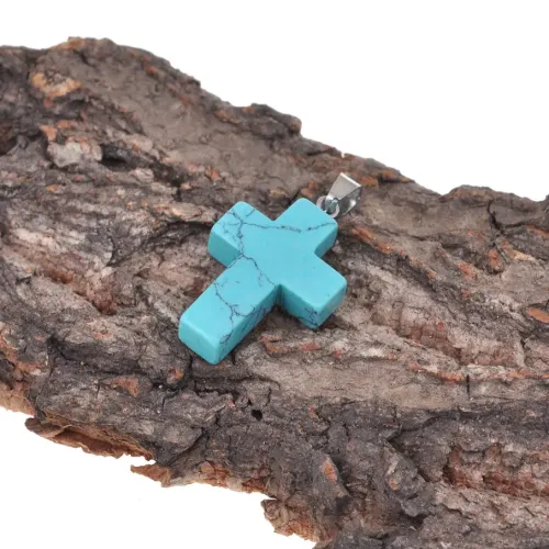 Крест из синтетического камня Бирюза 26х18х6мм KR008-01