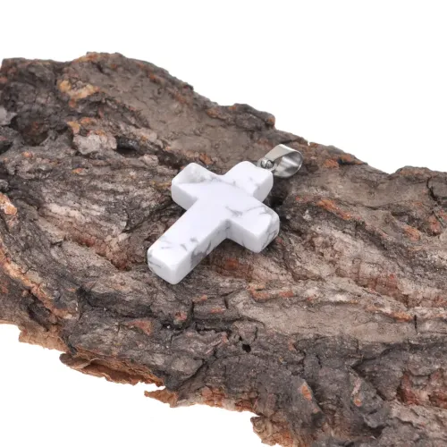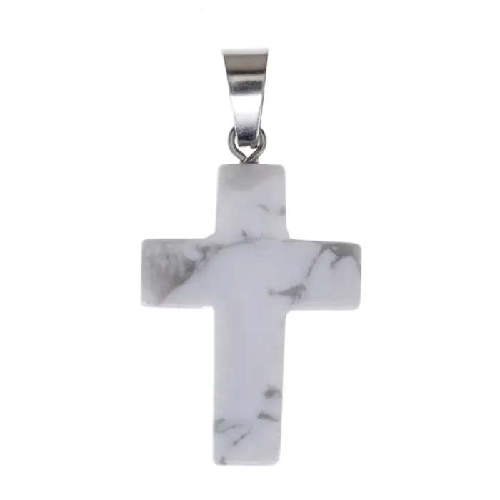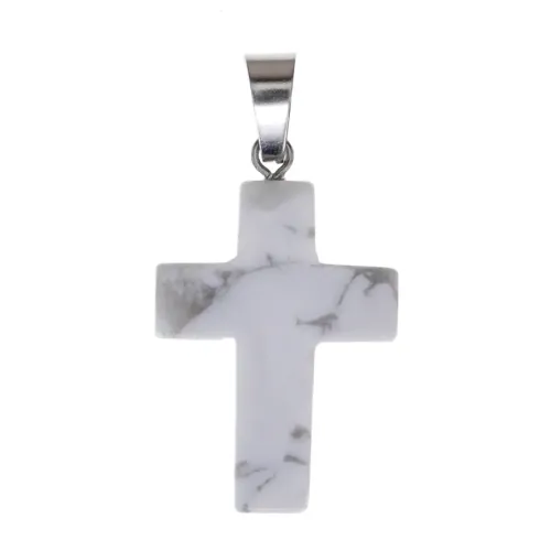 Крест из натурального камня Кахолонг 26х18х6мм KR008-02