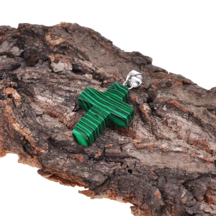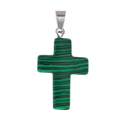 Крест из синтетического камня Малахит 26х18х6мм KR008-04