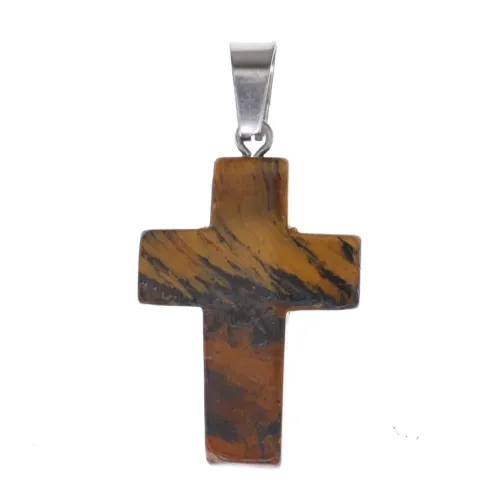 Крест из натурального камня Тигровый глаз 26х18х6мм KR008-09