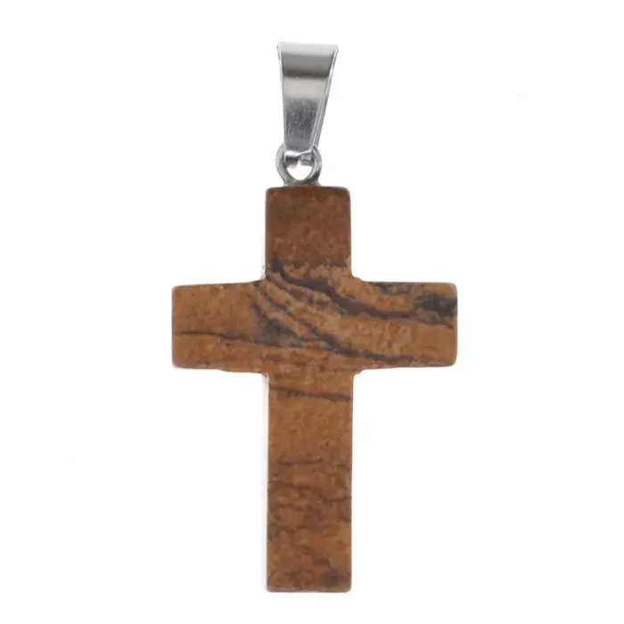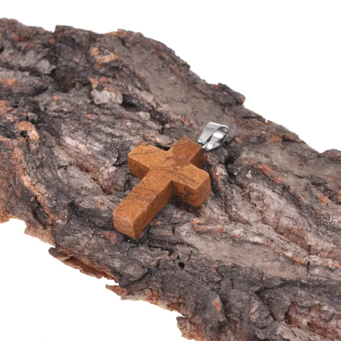 Крест из натурального камня Песочная яшма 26х18х6мм KR008-10