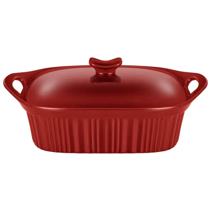 - Материал: керамика- Размеры (ДxШxВ): 33x23x9,5/13 см- Объём: 2 л- Количество предметов в наборе: 1 форма с крышкой- Совместимость: духовой шкаф (до 200°C), микроволновая печь, посудомоечная машина, холодильник- Особенности ухода: допускается мытье в посудомоечной машине