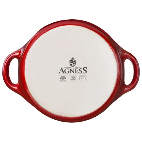 Керамический горшочек для запекания Agness серии Reactive Red предназначен для приготовления и подачи блюд в духовом шкафу. Изделие изготовлено из керамики и покрыто реактивной глазурью, что обеспечивает равномерный нагрев и создаёт уникальную многослойную текстуру поверхности.