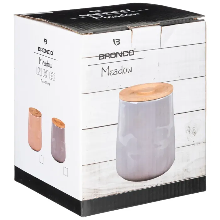 Банка для сыпучих продуктов из коллекции Meadow бренда Bronco предназначена для хранения круп, сахара или муки. Изделие изготовлено из упрочненного фарфора и украшено ботаническим рисунком.