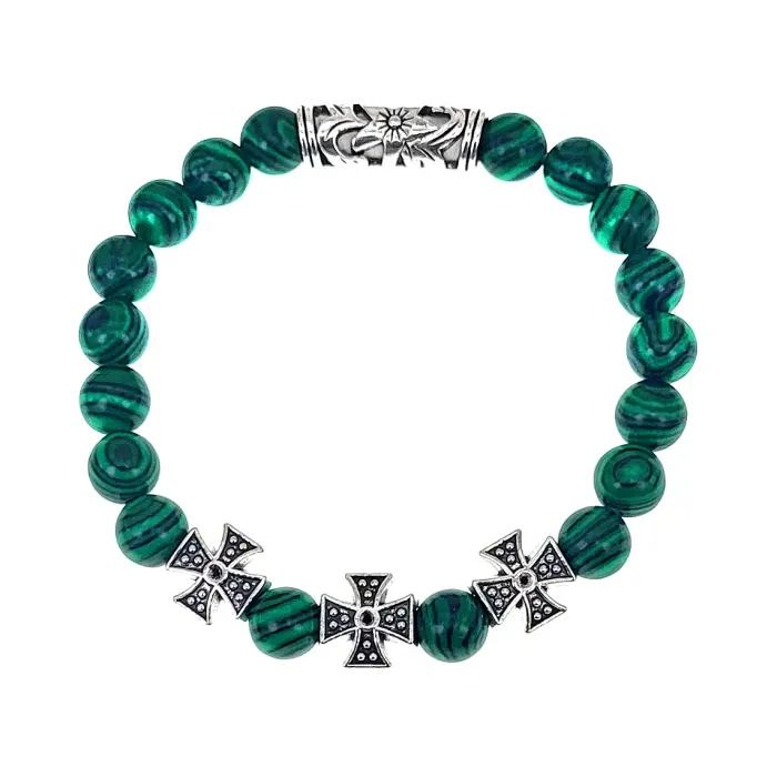 Браслет с молитвой Господу Богу за семью, Малахит BSH-18-12