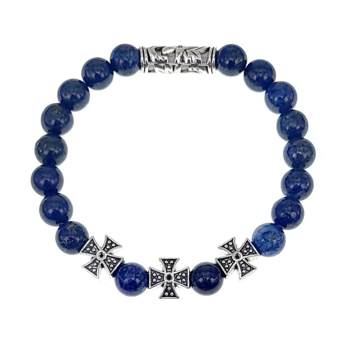 Стрейч-браслет с бусинами из натурального лазурита, украшенный молитвой Пресвятой Богородице от беды. Этот уникальный аксессуар не только привлекает внимание своим дизайном, но и несёт в себе глубокий символический смысл, оберегая своего владельца.