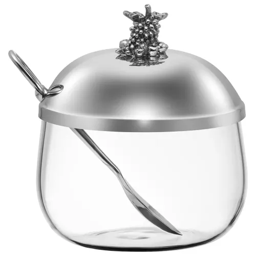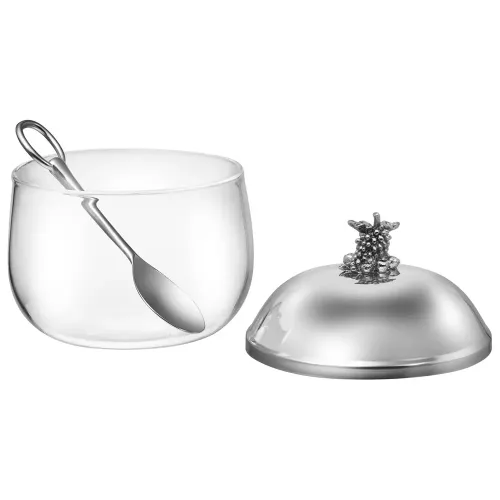 - Материал: стекло, нержавеющая сталь 304- Объём: 320 мл- Конструктивные элементы: крышка из нержавеющей стали, хромированная подставка, металлические ручки, ложка- Особенности ухода: рекомендуется ручная мойка для подставки и крышки
