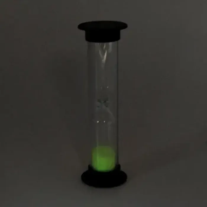 Песочные часы на 1 минуту для интерьерного декора. Материал: стекло и пластик. Особенность: светятся в темноте.
