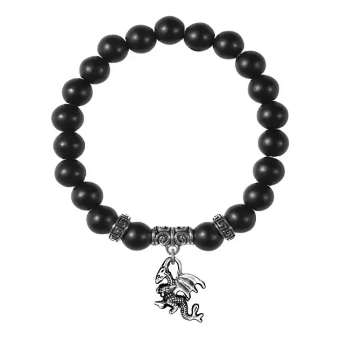 Браслет-амулет из синтетического шунгита с подвеской в виде дракона.