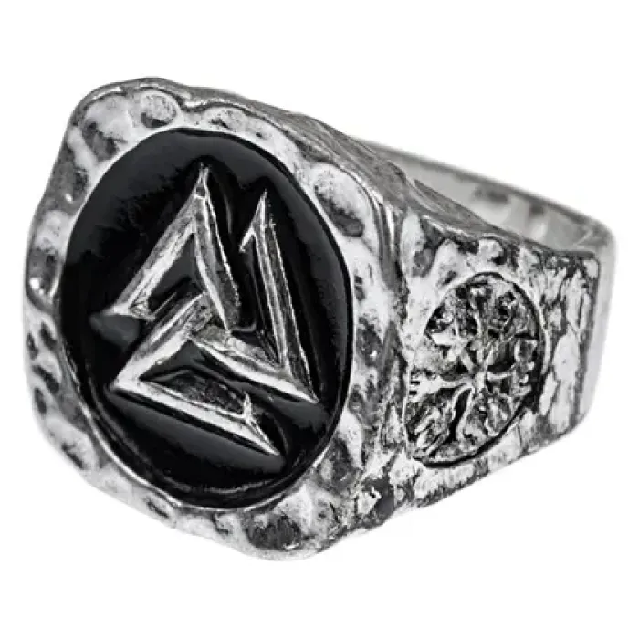 Кольцо Валькнут — металлический аксессуар с символом, ассоциирующимся со скандинавской культурой.