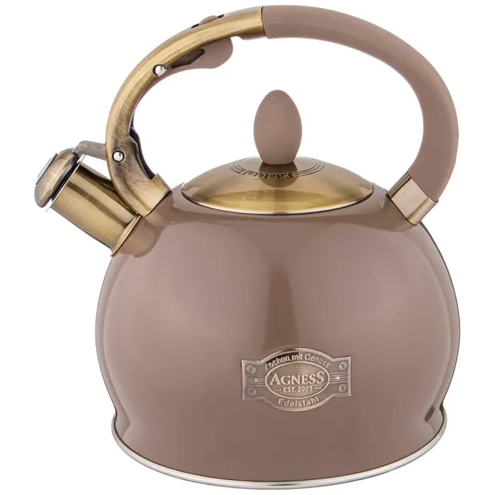 Чайник со свистком Agness объёмом 3 литра предназначен для кипячения воды на различных типах плит. Основные преимущества включают использование нержавеющей стали и наличие капсульного индукционного дна.