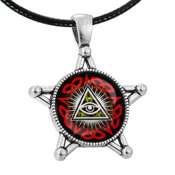 Сувенирный амулет из бижутерного сплава с изображением пентакля.
