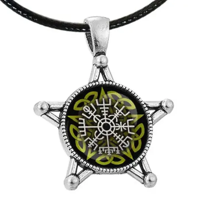 Сувенирный амулет в виде компаса Вегвизир из бижутерного сплава.