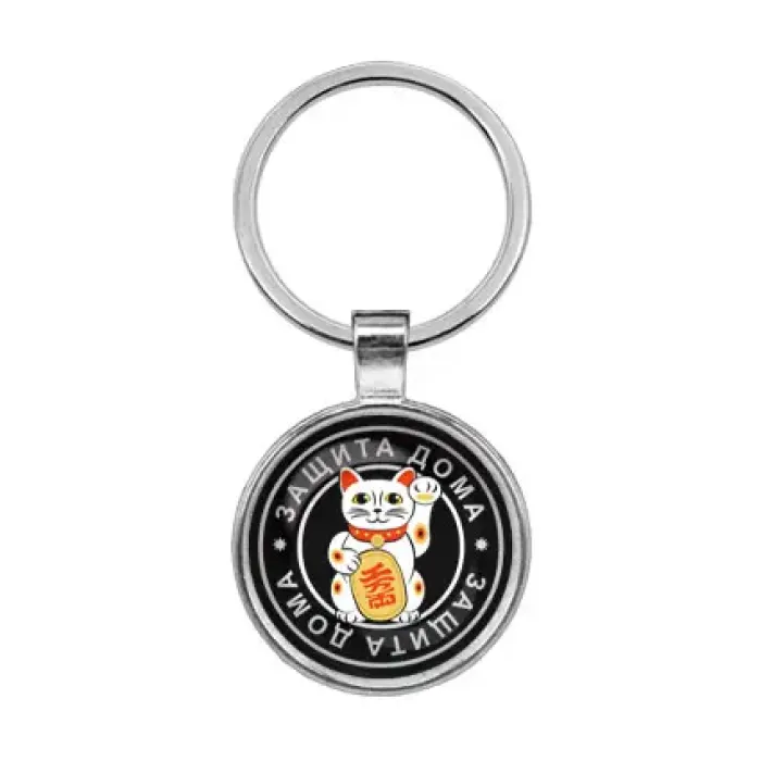 Брелок-сувенир Манеки-Неко из бижутерного сплава со стеклянной линзой.