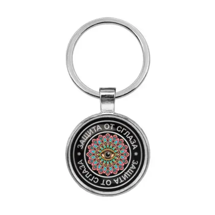 Брелок для защиты от сглаза из бижутерного сплава со стеклянной линзой.