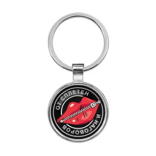 Брелок для ключей из бижутерного сплава и стекла с покрытием под серебро.