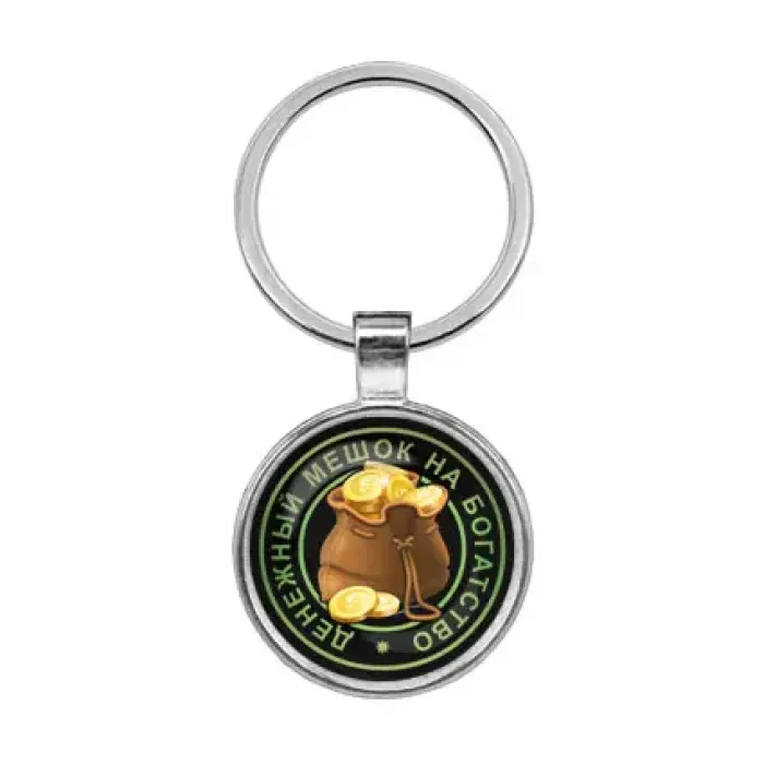 Брелок в виде денежного мешка из бижутерного сплава со стеклянной линзой.