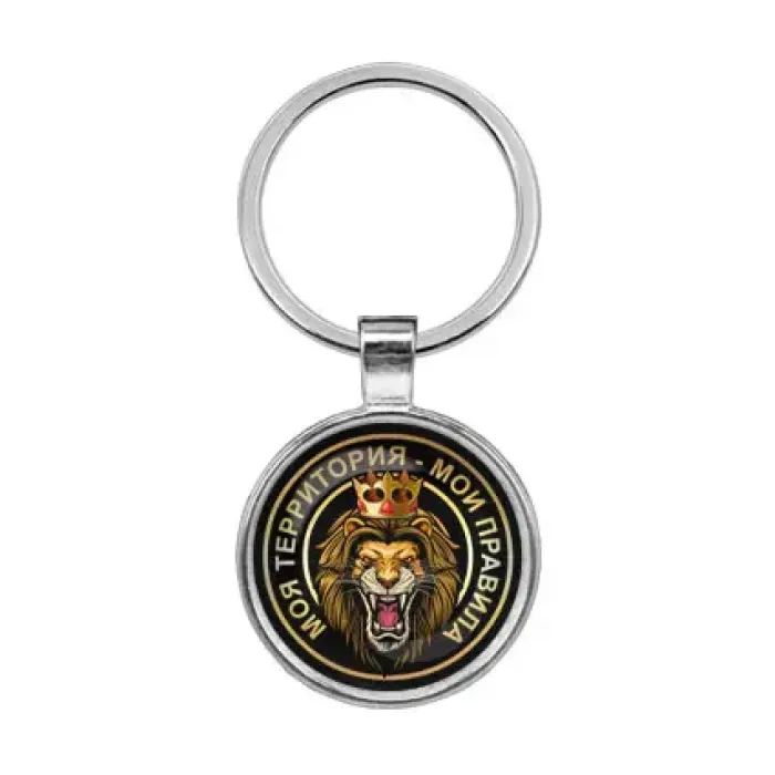 Брелок с надписью «Моя территория — мои правила». Изготовлен из бижутерного сплава, стали и стекла.